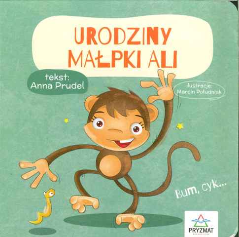 Urodziny małpki Ali / tekst: Anna Prudel ; ilustracje: Marcin Południak. - [Przemyśl] : Wydawnictwo Pryzmat, [2020]. - [14] stron : ilustracje ; 15x15 cm.